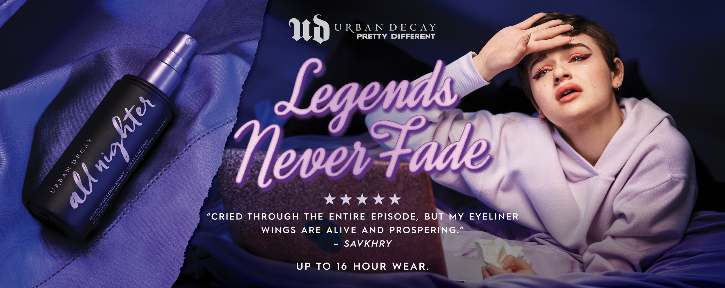 Urban Decay All Nighter Setting Spray has been a cult favorite for decades. To launch an updated formula we were tasked with bringing its cult status to life. Pages deep on a twitter scroll, we had laughed, gasped and shuttered at the tales from fans about just how hard the product had worked for them. We decided the only way to honor All Nighter Setting Spray would be to recreate our favorite (and brand approved) tweets thus bringing to life LEGENDS NEVER FADE.